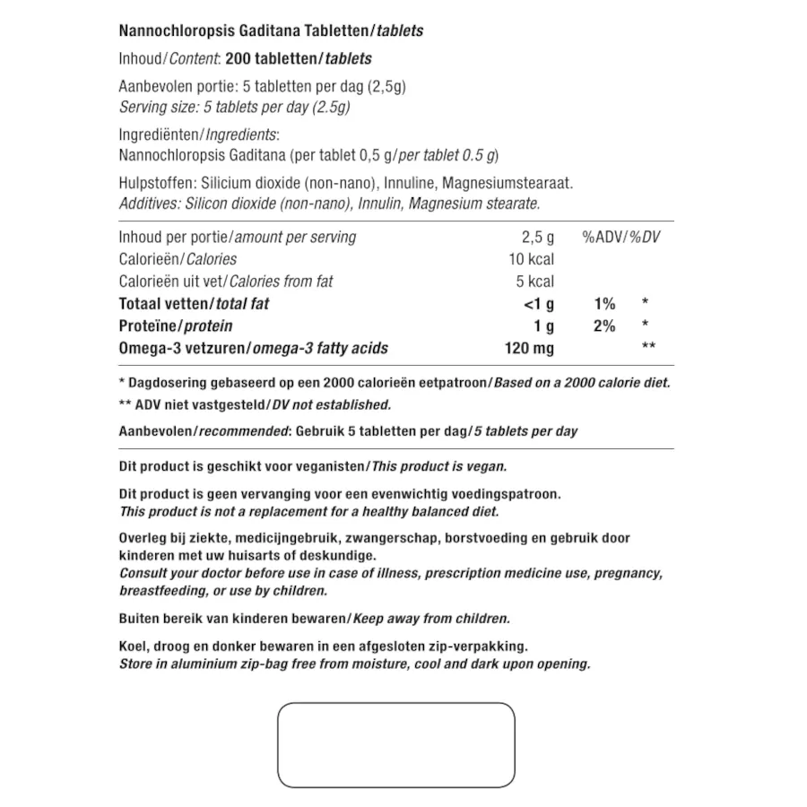 Nannochloropsis tablettenNannochloropsis Gaditana – 33 gram tabletten